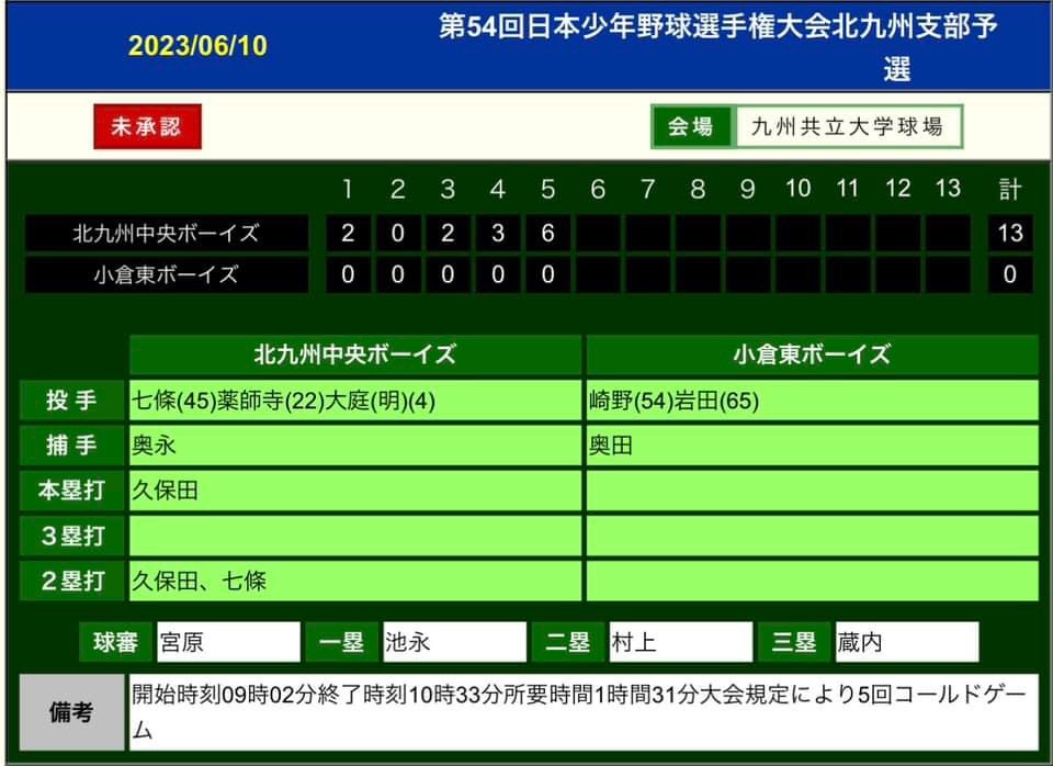 北九州中央ボーイズ 13 – 0 小倉東ボーイズ